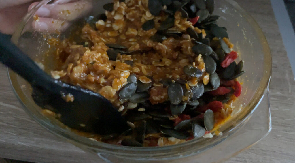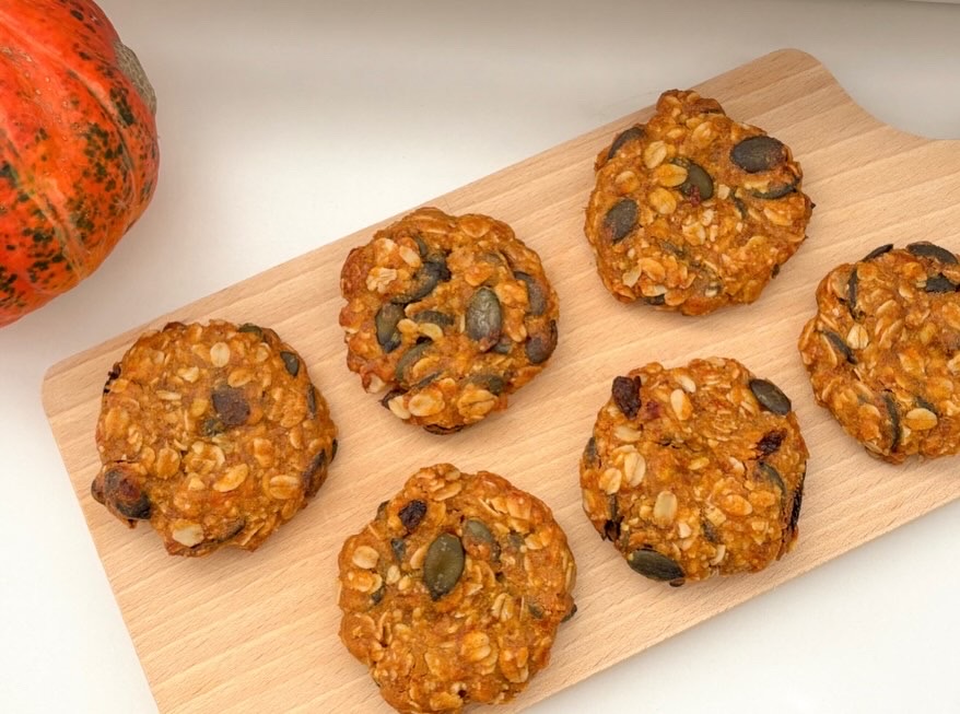 かぼちゃのしっとり感にかぼちゃの種のカリカリがアクセント、植物性&グルテンフリーで体にも優しいかぼちゃオーツクッキーの作り方をご紹介します♡