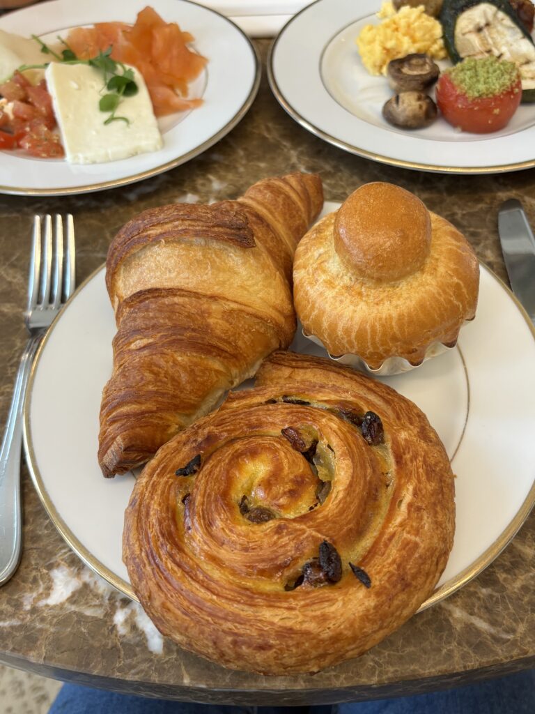 人が多くてあまり写真は撮れませんでしたが、優雅な空間で頂く豪華な朝食はとてもテンションが上がりました。朝からハッピーな気分になれますね。
