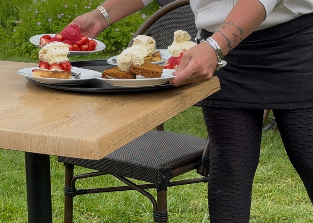 可愛らしい小屋の建つアングロチャイニーズガーデン内にある【Restaurant du Hameau】では昔ながらの伝統的なクレームシャンティ(ホイップクリーム)を頂けます。